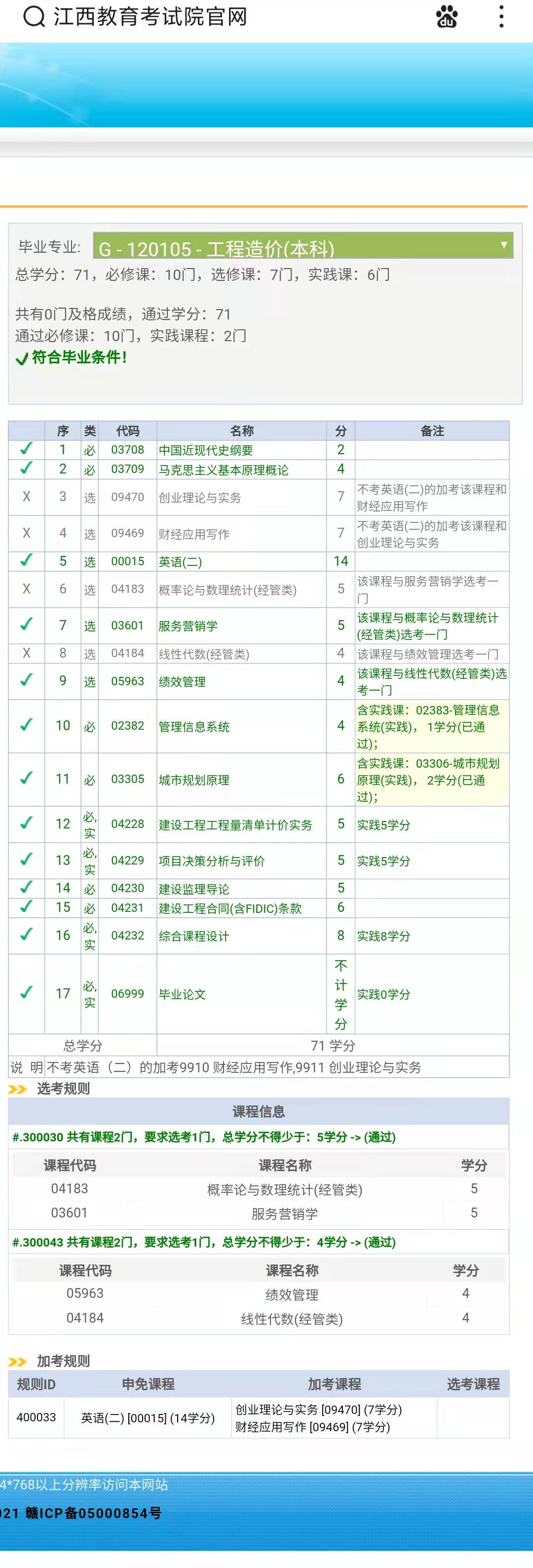 (1)实践环节考核课程:考试计划中单设学分的纯实践课程报考要求至少报考一门理论考试课程且成绩合格;考试计划中实践占部分学分的课程,报考实践考核需对应的理论课程成绩合格。